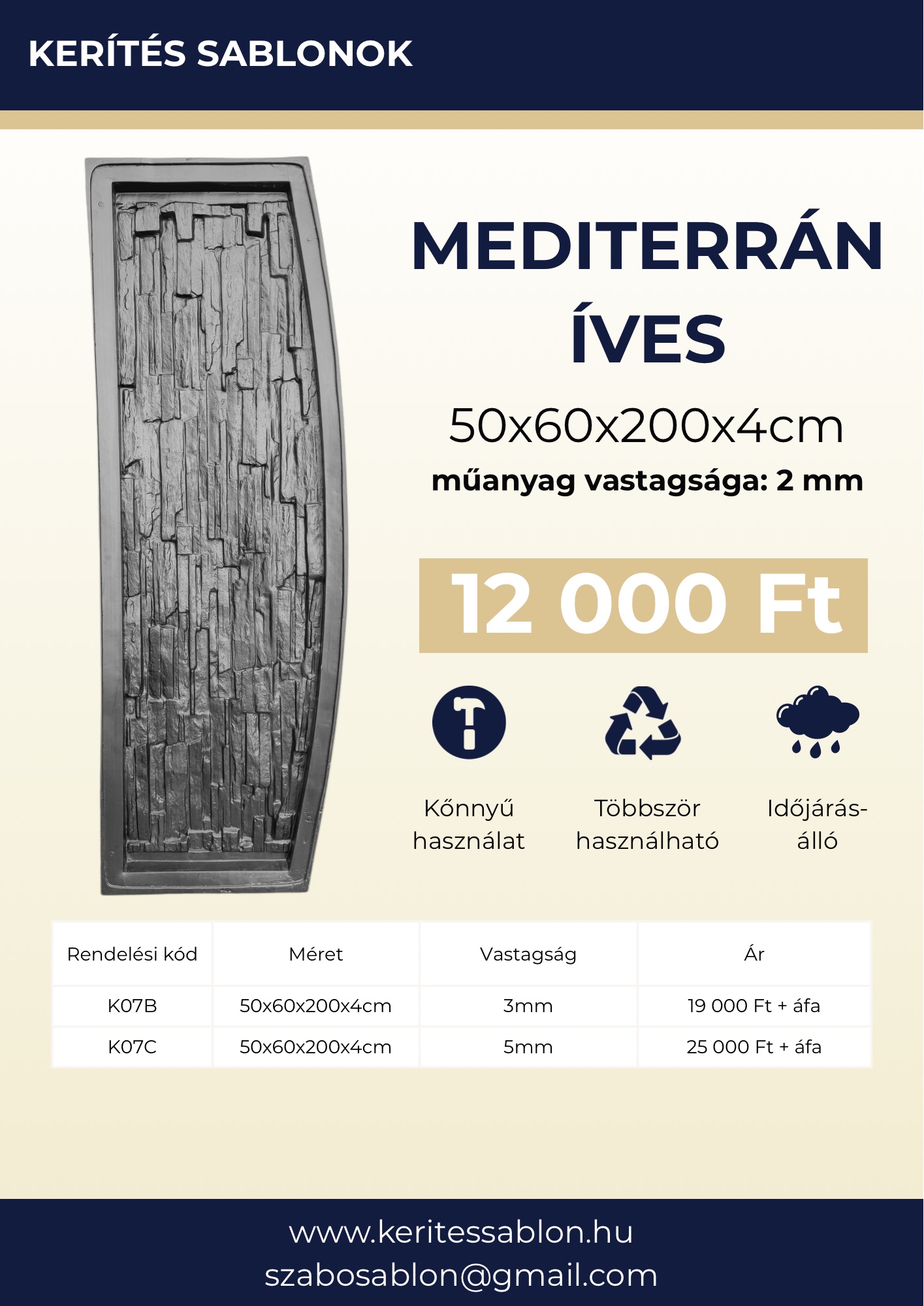 K07. Mediterrán íves kerítéssablon – 200x50x4 cm