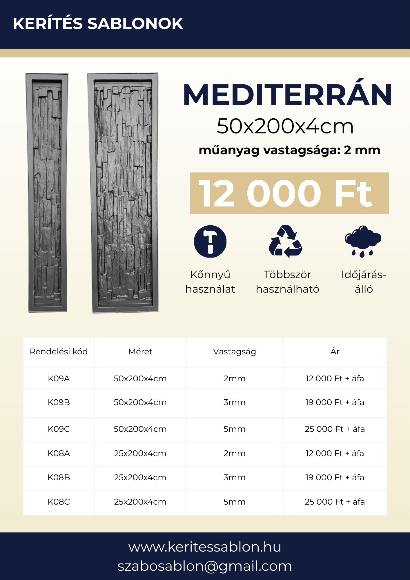 A sablonnal praktikus, 25 cm magas kiegészítő paneleket készíthetsz, amelyek tökéletesen illeszkednek a mediterrán stílushoz és emelik kerítésed esztétikai értékét.