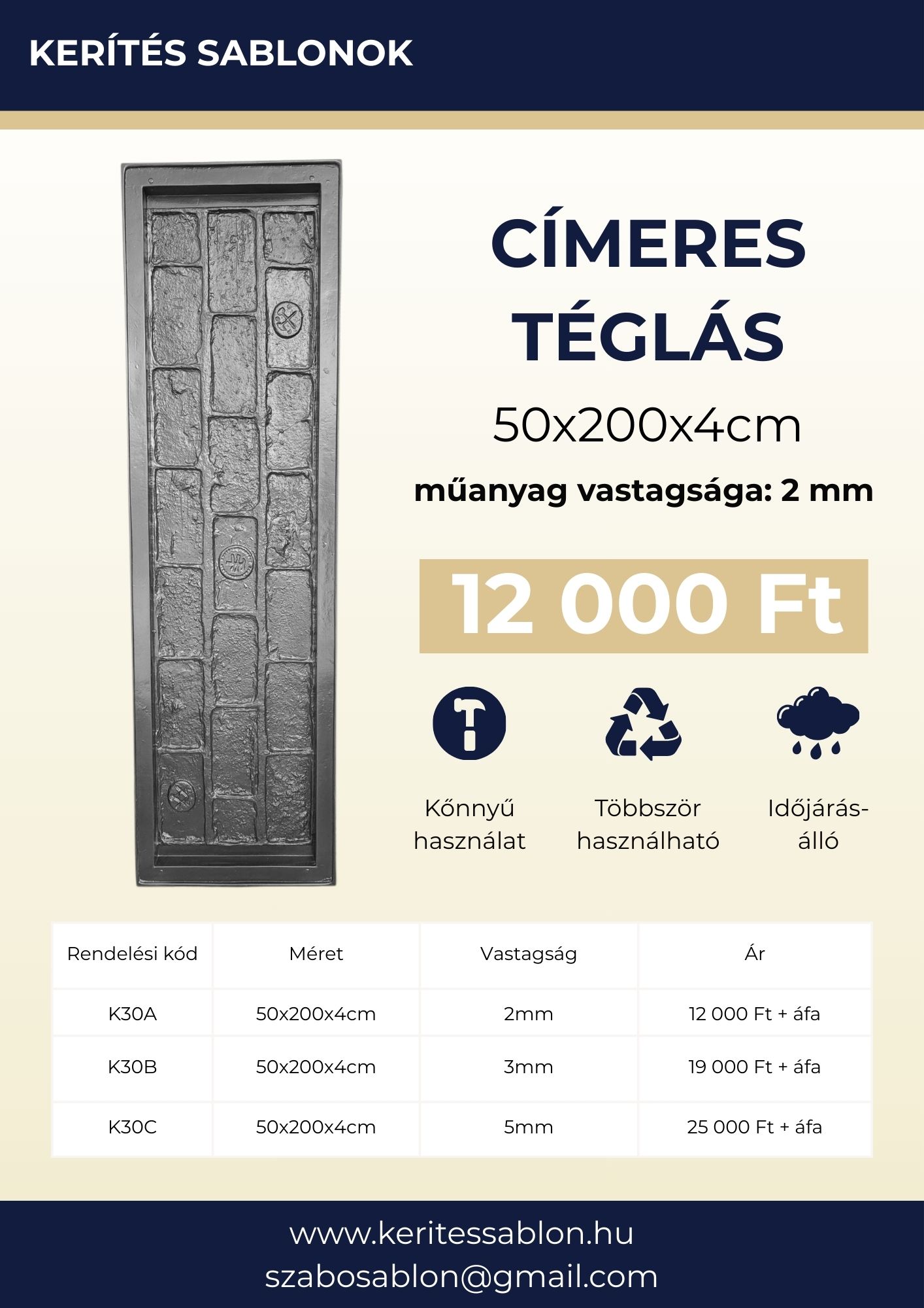 K30. Címeres téglás kerítéssablon – 200x50x4 cm
