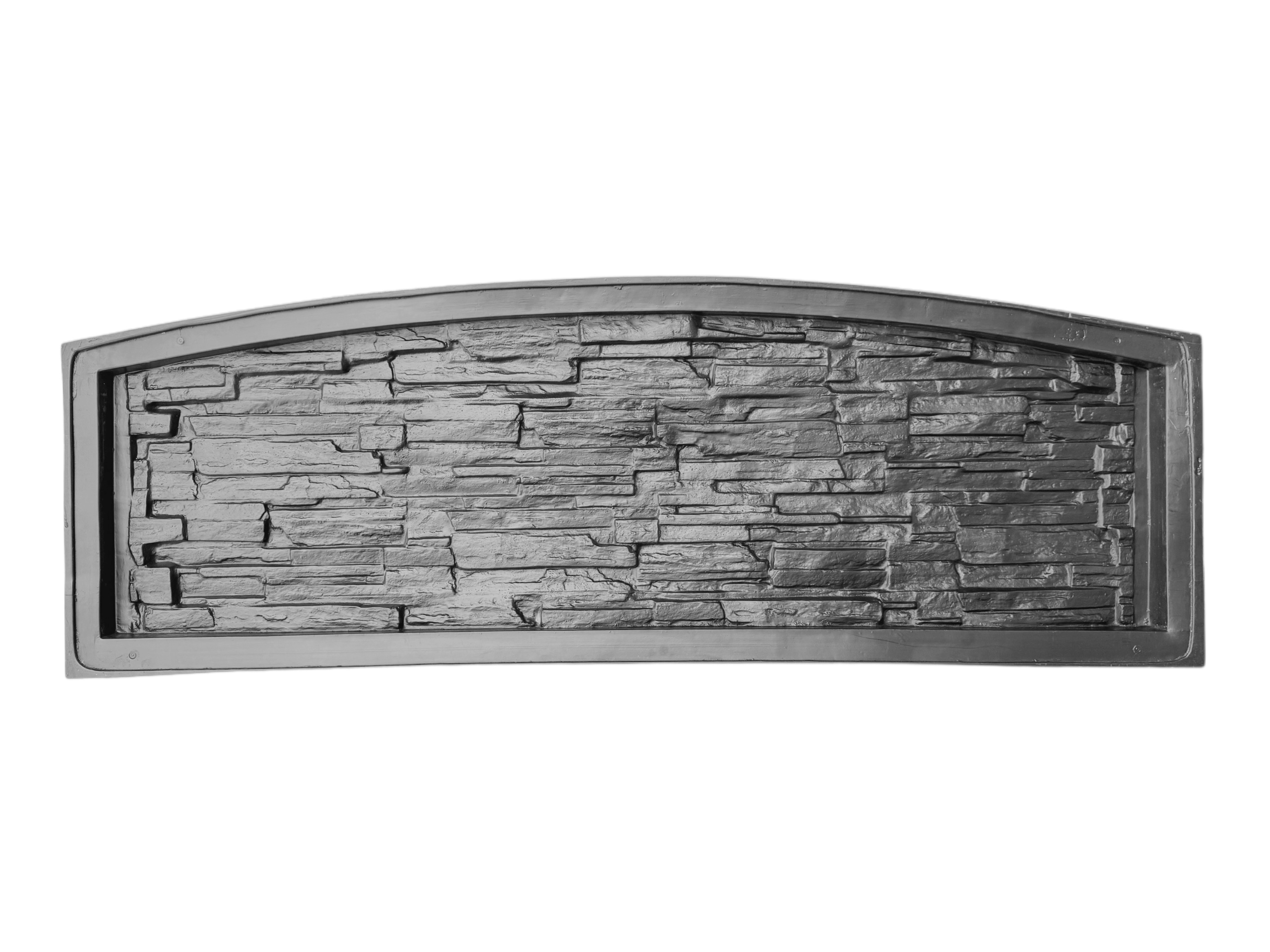 Az ívelt forma elegáns és harmonikus megjelenést kölcsönöz a kerítésnek, miközben a kőhatású felület természetes hatást kelt.
