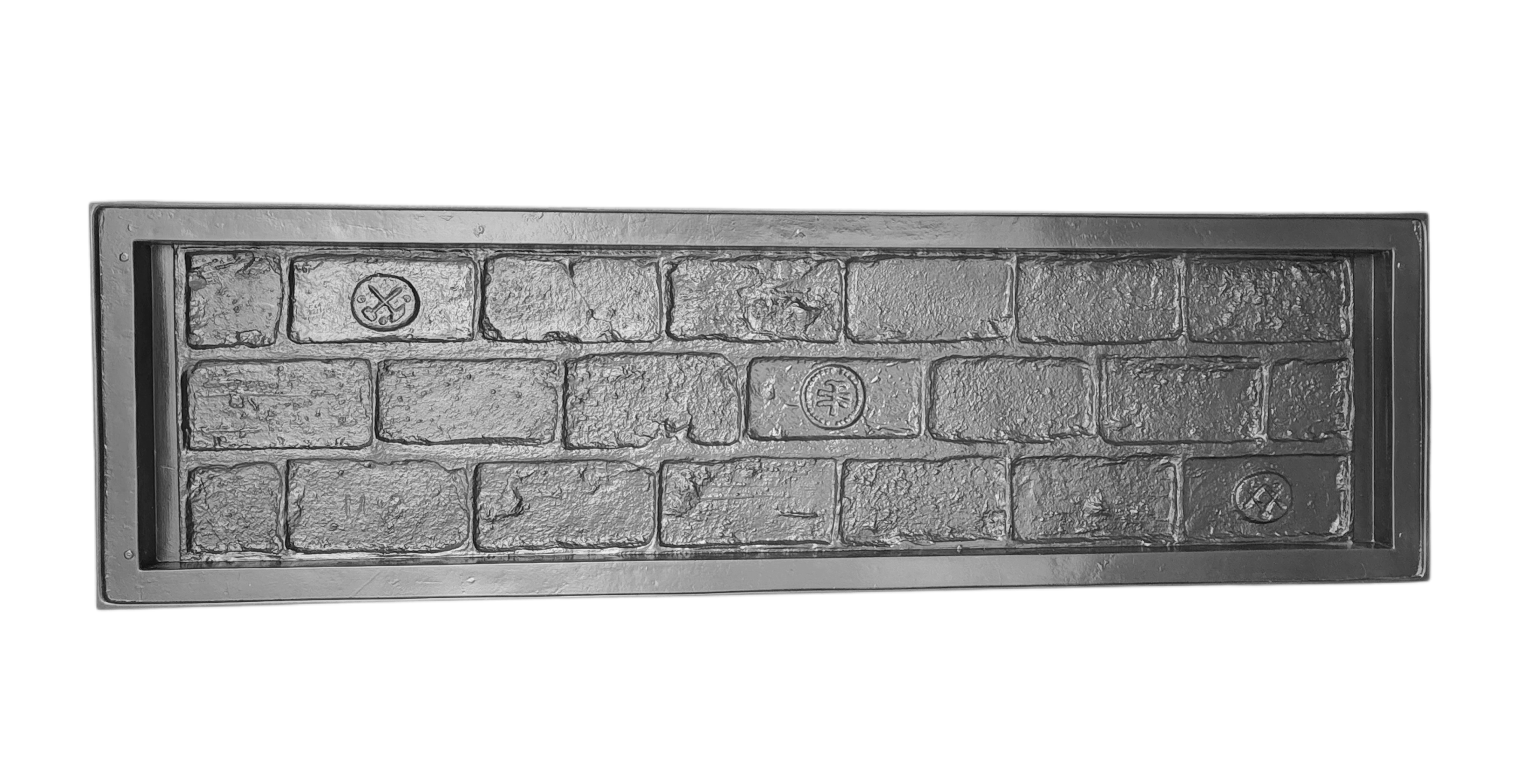 A különleges téglafal hatású minta apró részletekkel és díszített címerlenyomatokkal teszi igazán különlegessé a betonpanelt.