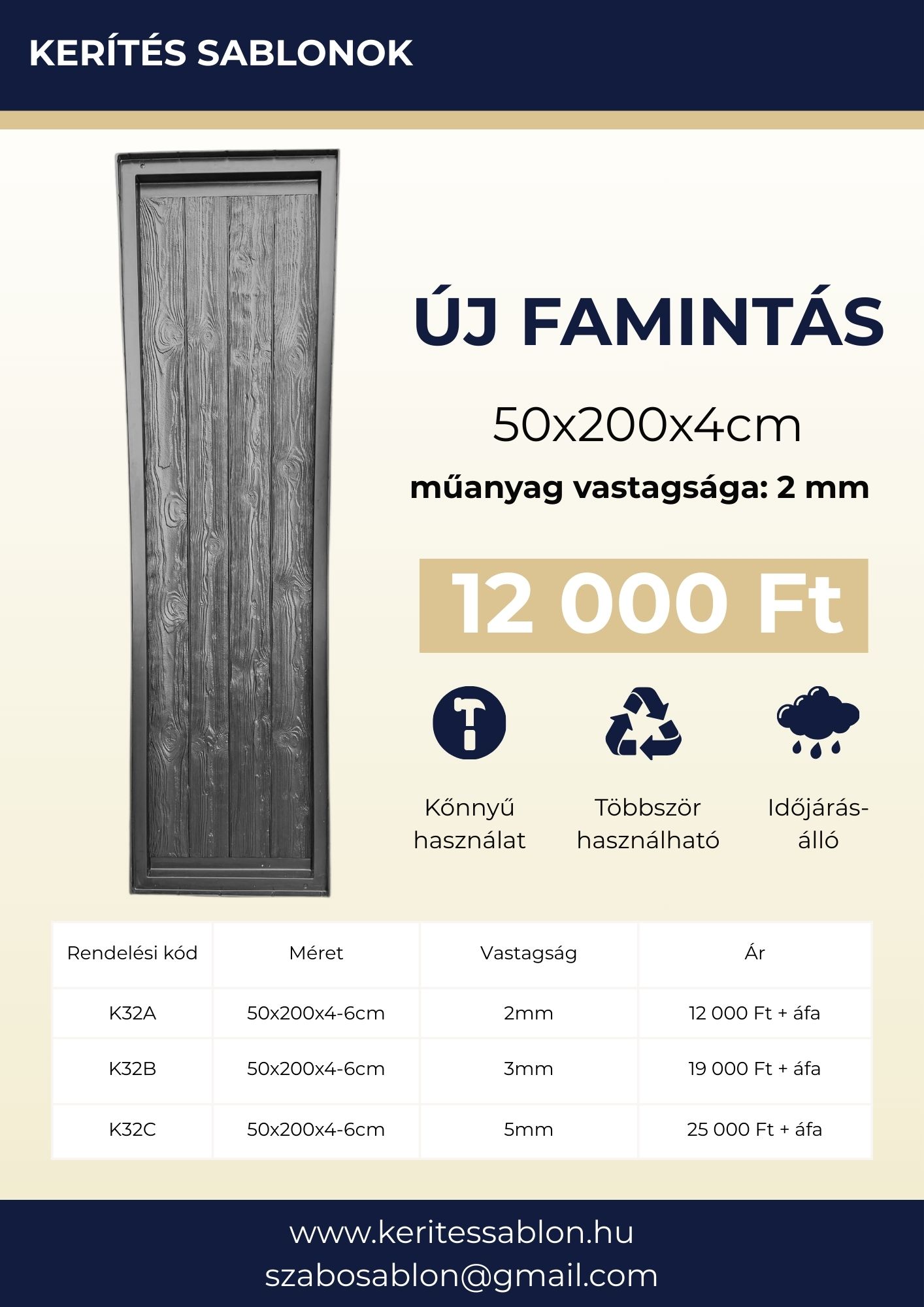 K32.Új fa mintás kerítéssablon – 200x50x4 cm